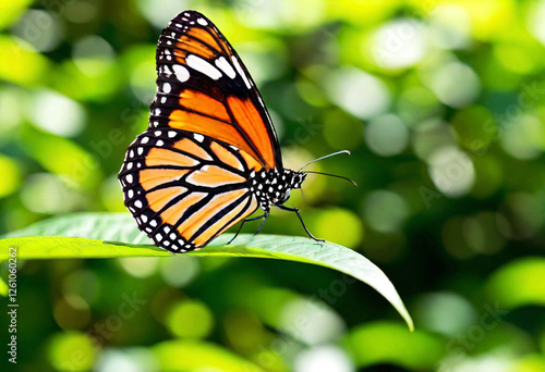 Design a captivating scene of a butterfly landing on a vibrant leaf, with intricate layers of foliage.