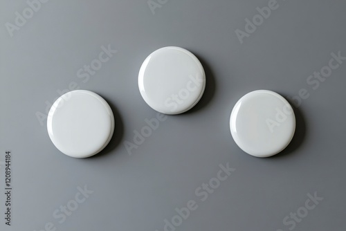 Design concept - top view of 3 white badge on grey background for mockup, 3D render.