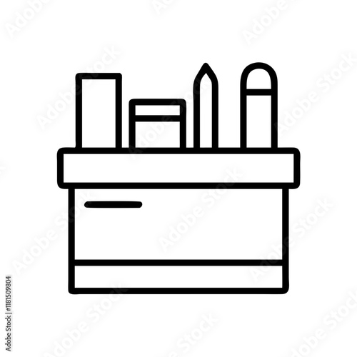 desk organizer icon, office line art, office vector - simple black line art icon of desk organizer perfect for logos, and office-themed designs.
