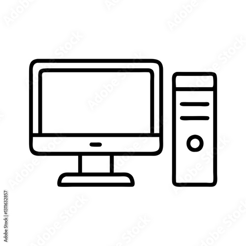 desktop computer icon, desktop computer line art - simple line art of desktop computer, perfect for desktop computer logos and icons