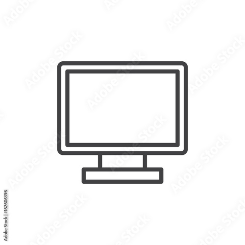desktop, computer, screen, icon, line, stroke, outline, linear, vector, logotype, pictogram, flat, symbol, signs, web, illustration, single, pixel, honed, aligned, simple, editable, graphic, electronic, device, office, monitor, technology, digital, front, lcd