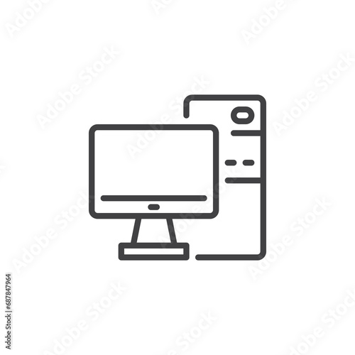 desktop, computer, monitor, icon, line, outline, linear, vector, logotype, pictogram, symbol, signs, clip art, design, illustration, thin, editable, graphic, simple, pixel, honed, hollow, device, screen, display, technology, hardware, tower, station, racked, front