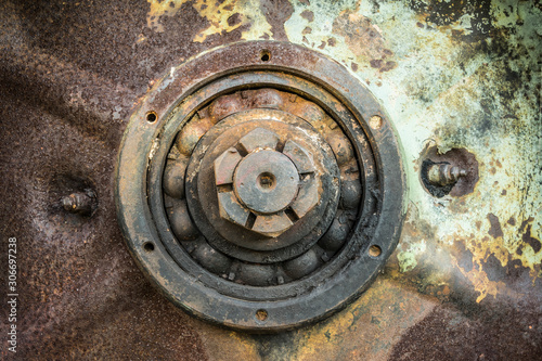 Detail from the wheel of an old tank.