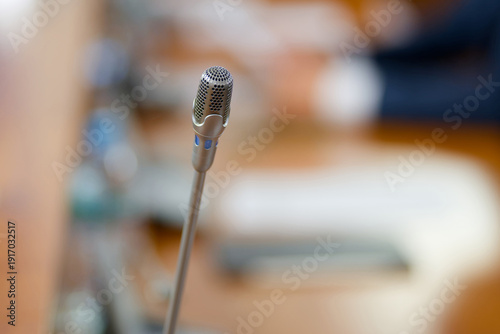 microphone, conference, speech, meeting, business, politic, public, speaker, seminar, debate, interview, table, audio, sound, report, official, event, corporate, hall, voice, blurred, background, closeup, equipment, communication, media, press, summit, forum, announcement, agenda, waiting, gooseneck, electronic, device, bokeh, sharpened, selective, desk, talk, negotiation, silver, detail, broadcasting, free
