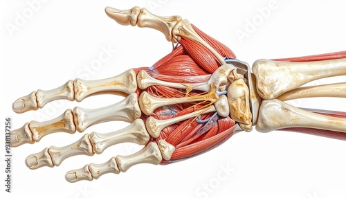 Detailed 3D Illustration of Human Wrist Anatomy Showing Bones, Ligaments and Tendons