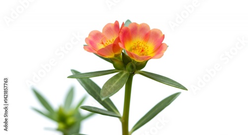 Detailed Botanical Real Shot Isolated White Background of Purslane Portulaca Oleracea Showing Leaf Structure and Flower Clusters in Natural Daylight Close-up