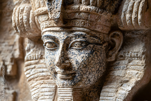 Detailed Carving of Ancient Egyptian Pharaoh in Stone