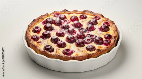 Detailed Cherry Clafoutis on white background realistic depiction baked custard theme 3D render Complementary Color Scheme
