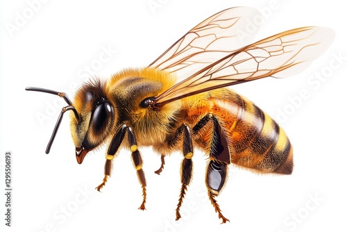 bee, honey bee, insect, animal, wing, flying, nature, wildlife, macro, close, up, detail, yellow, black, stripes, furry, antennae, leg, eye, body, isolated, white, background, arthropod, invertebrate, honey, pollen, nectar, garden, flower, summer, spring, buzzing, pollination, agriculture, apiculture, hive, men at work, drone, queen, colony, swarm, vector, illustration, drawing, art, graphic, design, realistic