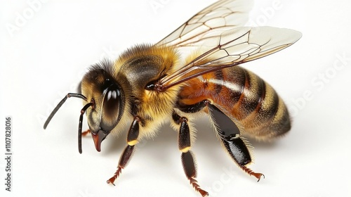 Detailed Close-Up of a Honeybee on a White Background