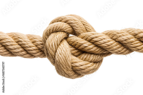 Detailed close-up of thick twisted natural rope knot for nautical design