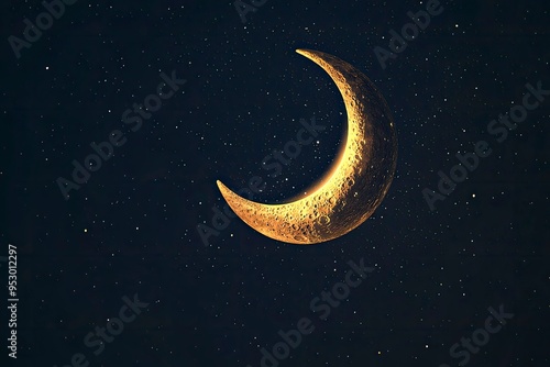 Detailed Crescent Moon in the night sky. Crescent Moon on black background with space for Ramadan theme , ai