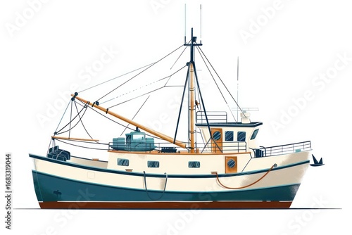 Detailed fishing boat illustration