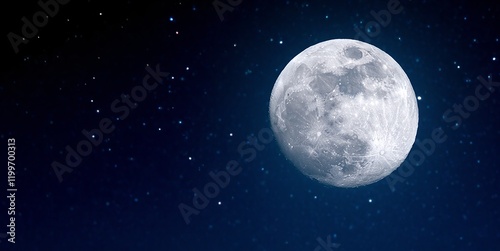 Detailed Full Moon Against Starry Night Sky High-Resolution Celestial Scene Perfect for Astronomy Science Projects Nighttime Photography and Artistic Uses. Made with generative AI