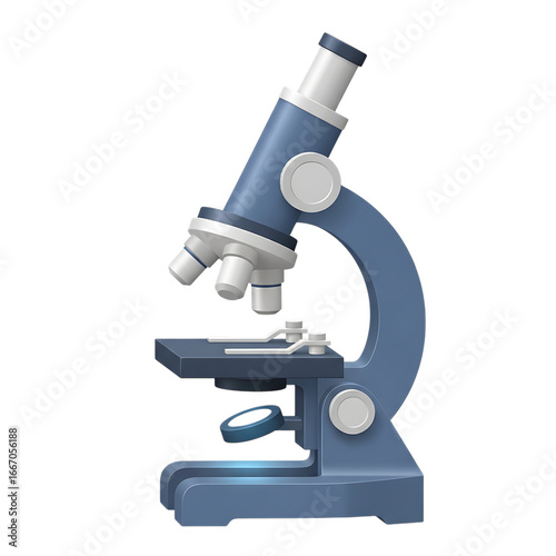 Detailed illustration of a blue laboratory microscope isolated on transparent background