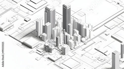 architecture, building, city landscape, skyscraper, urban, modern, abstract, geometry, grid, pattern, perspective, design, construction, engineering, development, real estate, business, finance, office, futuristic, minimalist, line, angle, overlapping, monochrome, greyscale, graphic, technical, digital