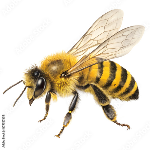 bee, honey bee, insect, animal, wildlife, nature, macro, closeup, detailed, photo, black background, isolated, wing, semitransparent, fuzzy, body, striped, yellow, black, antennae, leg, pollination, nectar, pollen, apiary, apiculture, worker bee, drone, hive, swarm, flying, buzzing, creature, arthropod, entomology, biology, science, agriculture, food, sweet, honeycomb, hexagon, wild, organic