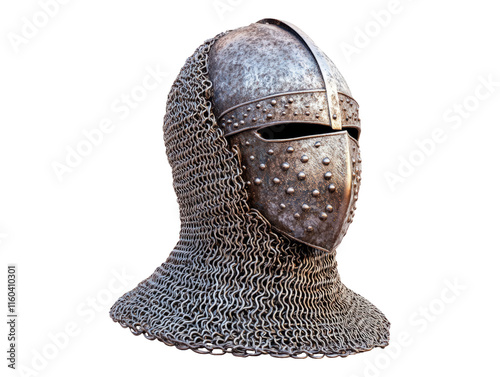 isolated, coif, headgear, protective, render, metal, armoring, mediaeval, helmet, unique, texture, design, shiny, historical, knight, costume, accessory, fighting, battle, war, vintage, craftsmanship, steel, rust-eaten, decoration, indoor, studio, transparent, background, classic, surface, glossy, exhibition, traditional, warrior, art, realism, detail, colours, ancient, material