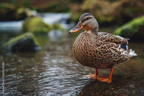Detailed shot of a brown mallard duck in Trillium Lake Oregon USA