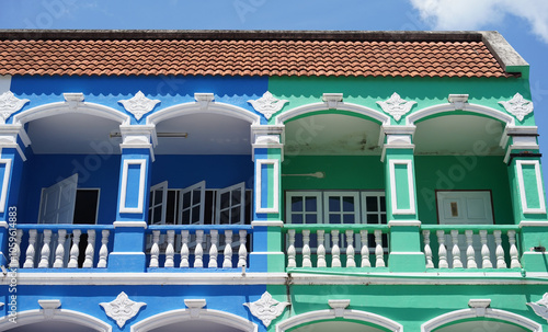 Detailed view of windows, doors and balconies of city buildings