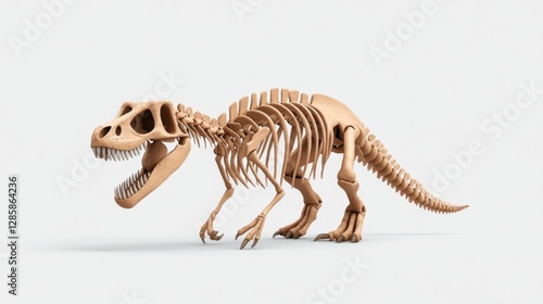 Detailed Wooden Skeleton Model of a Tyrannosaurus Rex in a Neutral Background for Educational Use