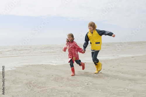 girl, boy, north sea, run, trenchcoat, hand, holding, boot, merry, jean, shoe, recreation, hand, underway, vacation, heaven, cloud, beach, outside, enjoyment, common, happy, laugh, childhood, man, children, children, blond, sibling, brother, sister, german