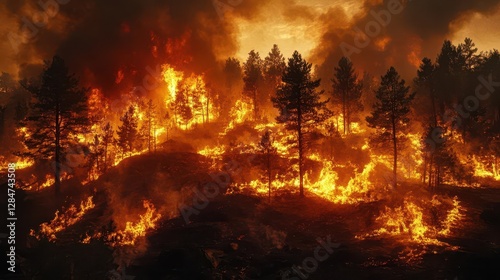 forest fire, wildfire, natural disaster, climate change, environmental, flames, smoke, ember, twilight, dramatic, destruction, nature, conservation, emergency, heat, danger, disaster, fir-wood, atmosphere, firefighting, global warming, ash, documentary, environmental impact, drought, wilderness, ecosystem, thermal, inferno, rescue