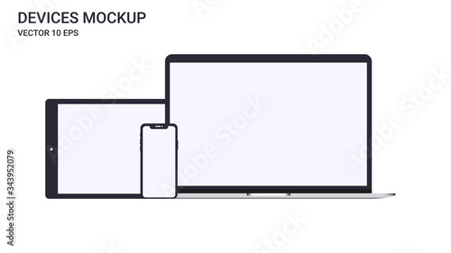 Device mockup template set of laptop, tablet, smartphone vector illustration