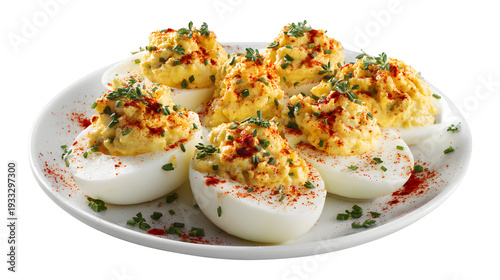 egg, food, party, snack, plate, garnish, herb, chives, paprika, seasoning, creamy, filling, mayo, mustard, cooked, boiled, egg, yolk, white, halved, delicious, epicure, catering, buffet, receipe, dish, meal, cookery, eatery, homemade, fresh, protein, nourishment, picnic, gathering, holiday, celebration, finger, bite, seasoned, topped, dusted, savoury, flavorful
