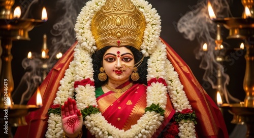 devotion, goddess, hinduism, deity, spirituality, faith, worship, divine, sacred, tradition, culture, ritual, prayer, blessing, prosperity, wealth, fortune, indian, religious, idol, sculpture, figurine, celebration
