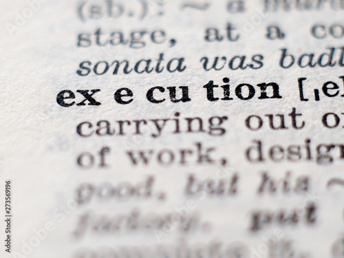 execution, dictionary, definition, bold, book, closeup, concept, detail, english, explanation, sharpened, highlight, information, learn, macro, meaning, nobody, page, paper, print, nomenclature, text, thesaurus, white, word