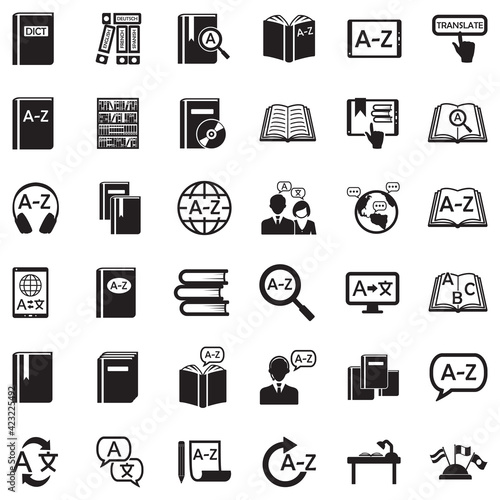 Dictionary Icons. Black Flat Design. Vector Illustration.