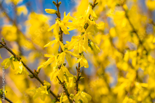 Die Forsythie ist einer der ersten Blühpflanzen in Deutschland im Frühling.