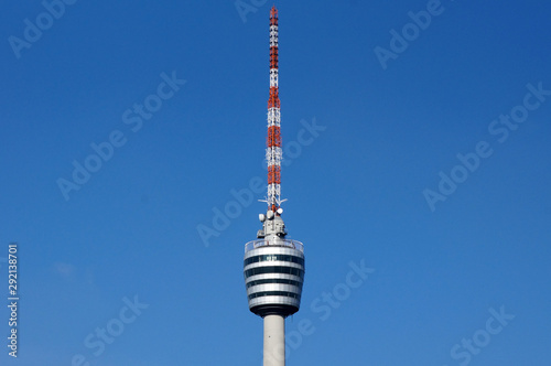 Die Spitze vom Stuttgarter Fernsehturm ohne einen einzigen Besucher auf der Aussichtsplattform.
