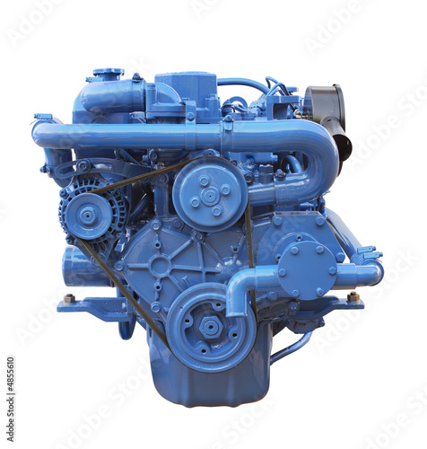 new, blue, motor, front, cut-out, isolated, motorboat, engine, diesel, marin