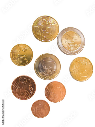 Different euro coinsand cents isolated in white