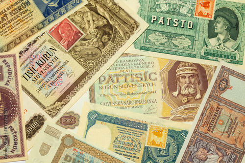 Different kinds old Banknotes from the all World in the Detail