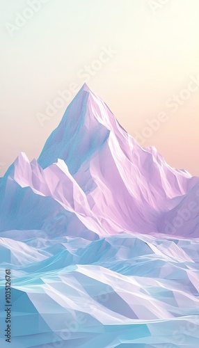 Digital abstract landscape with low poly mountain shapes and pastel tones