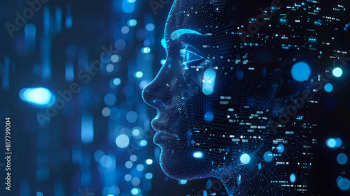 artificial intelligence, digital, blue, light, face, intelligence, technology, futurism, innovation, computer, conceptual, cyber, cybernetic, depth, silhouette, modern, futuristic, datum, digital artwork, visualisation, abstract, thinking, cognition, progress, growth, advanced, insight, creative, style, contemporary, bokeh, profile, head, circuitry, binary code, pixel, graphic, design, science, research, development, network, automation