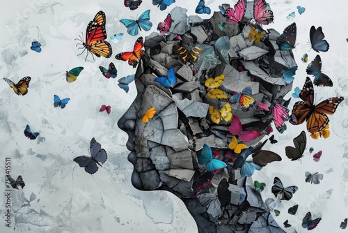 digital, artwork, shattered, human, sculpture, surrounded, colourful, butterfly, act, freedom, transformation, symbolic, art, emotional, concept, liberation, artistic, representation, metaphoric, imagery, abstract, creative, design, composition, psychological, personal, growth, meaning, spiritual, journey, healing, vibrant, colours, drawing, surreal, expressive, painting, expression, symbolism, beauty, butterfly, interpretation, artistry, creativity