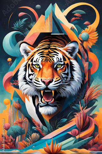 digital artwork tiger animal head abstract surrealism contemporary colorful digital artwork,Generative AI