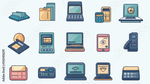 Digital Banking Icons Bundle in Flat Vector Design
