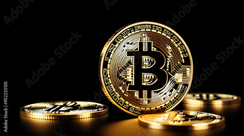 digital bitcoin coin breaking pieces dark background