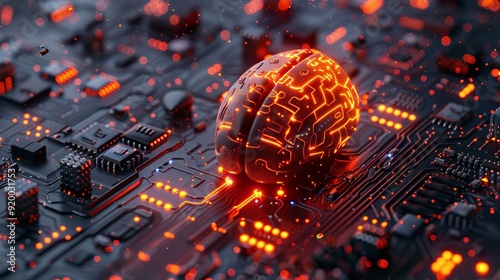 Digital Brain Integrated Circuit Board with Intricate Electronic Pathways and Advanced Technology