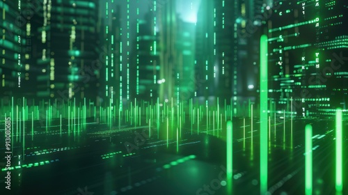 digital, city landscape, abstract, line, green, neon, code, technology, future, network, datum, cyber, space, graphic, design, geometric, futuristic, pattern, background, texture, glow, light, dark, bright, high-coloured, modern, style, dynamic, energy, artificial, intelligence, virtual, reality, science, fiction, concept, illustration