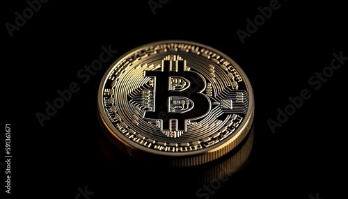 Digital Cryptocurrency Bitcoin on black background, Generative AI