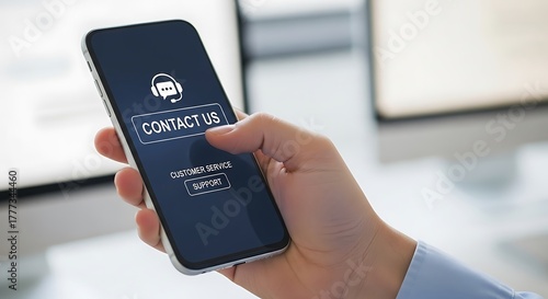 Digital Customer Service: Hand Tapping "Contact Us" on Smartphone for Online Support & Communication
