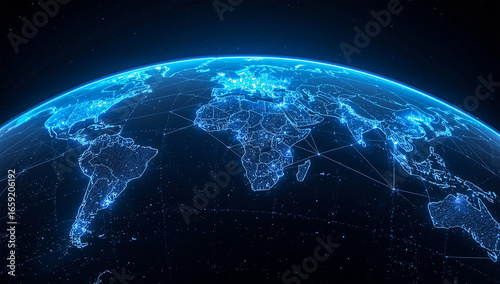 Digital Globe with Glowing Blue Connections Representing Global Network and Technology Communication