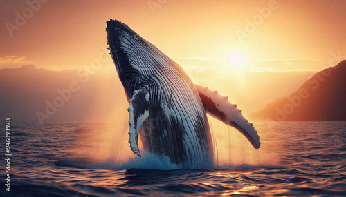 three-dimensional, rendering, illustration, whale, leaping, background, blue, sea, abstract, freedom, jump, ocean, jumping, summer, fun, beauty, water, landscape, nature, wave, sunset, animal, wildlife, marin, sun