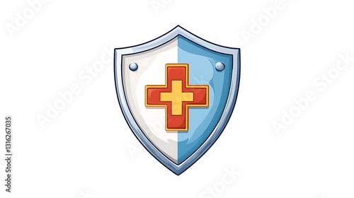 Digital Illustration: Protective Shield with Red Cross Symbol AI Generated